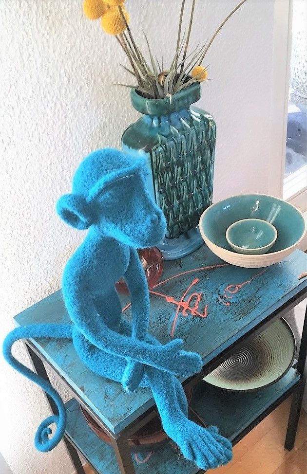Filzobjekt - blauer Affe - 2019