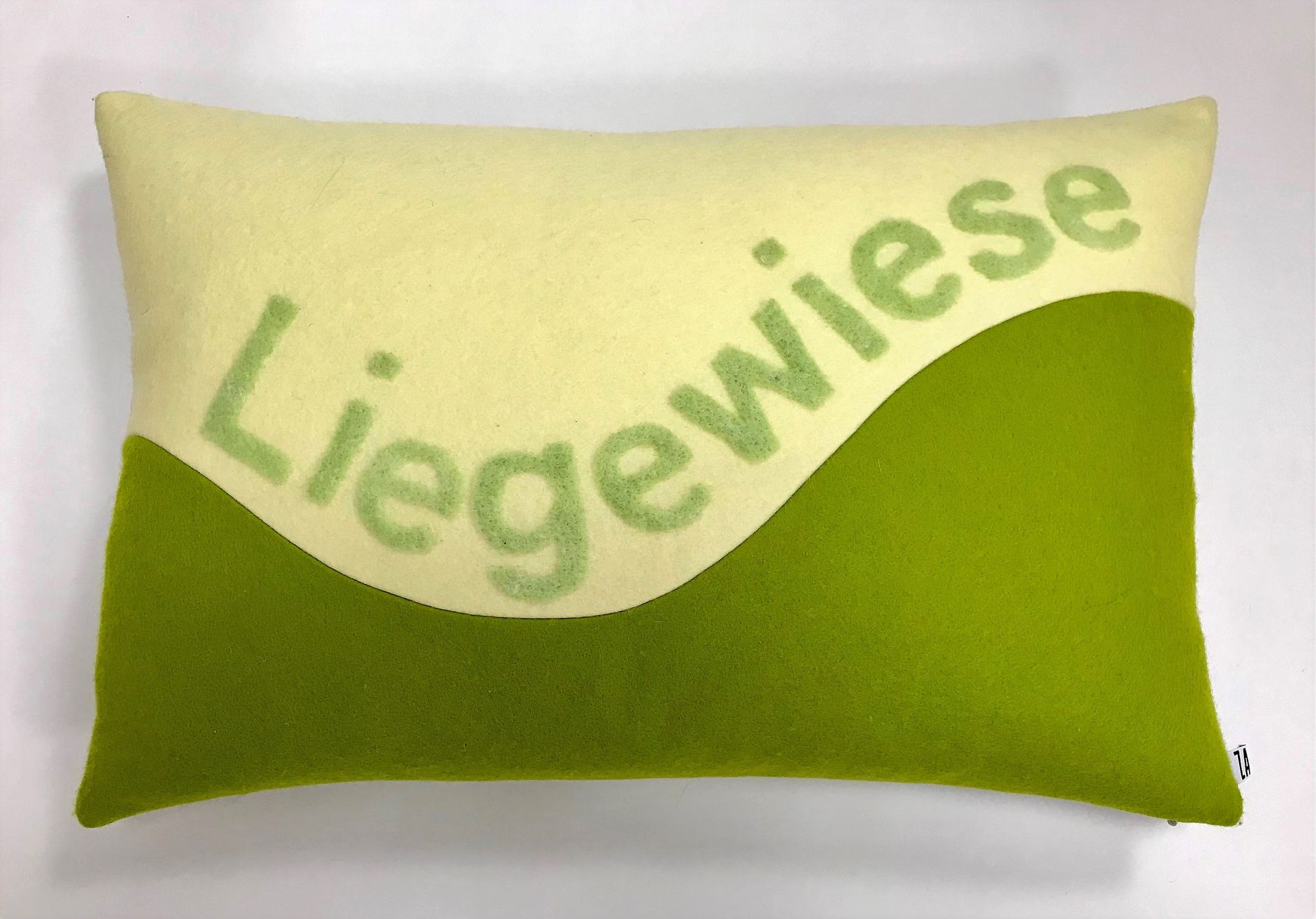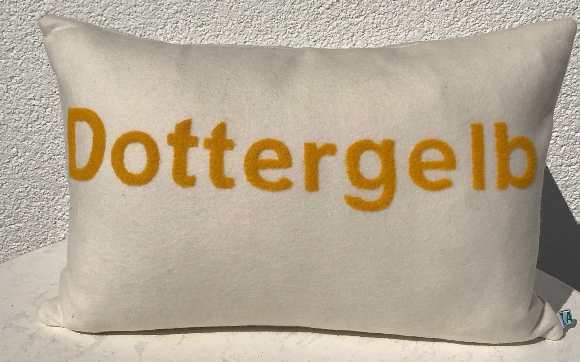 Kissen "Dottergelb", 40x60 cm, 100% Wollfilz, Schrift Nadelfilz